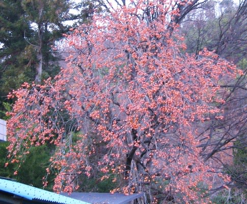 正解は、柿の鈴なり。収穫しないで、自然に任せた柿の木が、こんな風に、彼方此方で見られます。