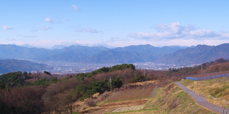 東御市の此処まで、戸倉上山田温泉から高速道使わず、50分足らずで到着します。初めて来ましたが、一寸小高い丘の感じ、浅間山麓の自然に囲まれた、なだらかな丘陵地、耕作可能な広大な土地が広がっています。眼下の向こうには、東御市・上田市の市街地が広がり、遠く北アルプスも望める絶景の眺めです。
