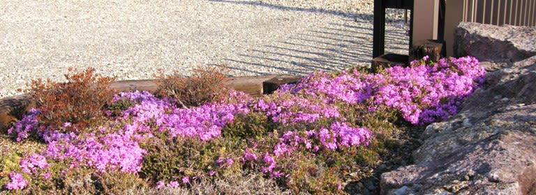 上の写真、当館駐車場入り口の芝桜です。毎年ドンドン増えて、植え込みからはみ出しそうです。同じ植え込みのサツキも埋没しそうです。今が見どころです。
