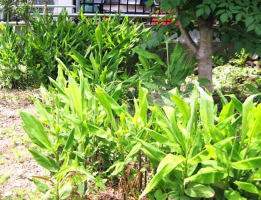 上の写真、ミョウガです。8月に入ると収穫出来ます。天然ものは味が濃く最高です。