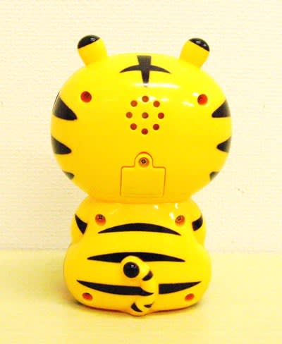 この貯金箱、カラクリで、音声を発生します。「ありがとう」「うれしいわ」「もっとちょうだい」「しあわせ」「ちゃんとたべろや」「なんじゃたらんぞ」など沢山に喋ります。