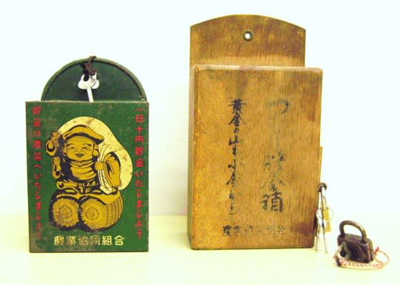 昭和時代も前半か、当時大量に農協が組合員に配布したのだろう味のある貯金箱を収蔵しました。