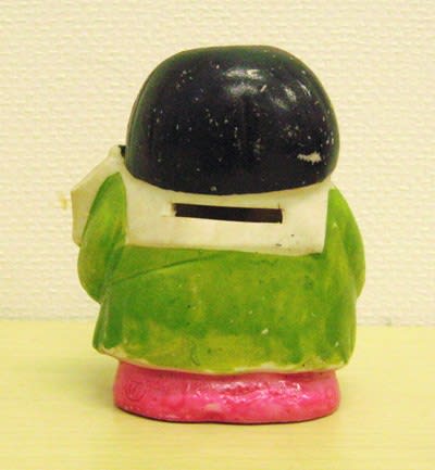 上の写真、土人形「おぼこ」の貯金箱、高さ25センチです。
