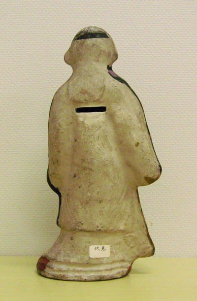 どちらの土人形貯金箱も、何時、何処で作られたものか分かりません。