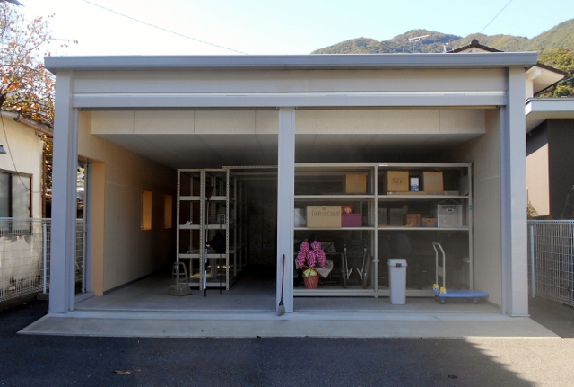 自宅の傍にある物置ですが、新築から4年を経て初めて正面シャッターを開けて掃除をしました。取り敢えず貯金箱かんの什器備品等の保管のために準備したものです。保管分の処理後は車庫としても活用するつもりです。