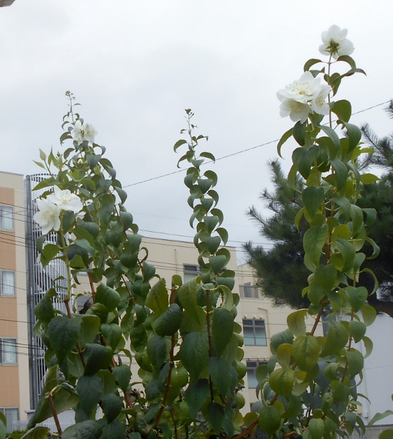 卯の花です。春先から間を置きながら何回か咲いてきました。今はほとんどの枝の天辺に蕾を持ち花を咲かしています。今年はこれが最後かも知れません。変わった卯の花? どんな種類なんでしよう。