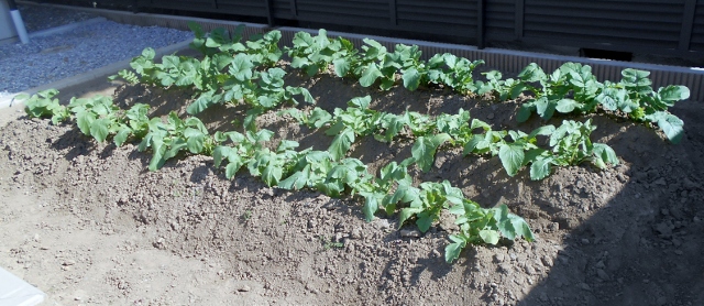 暫く晴れていた午前中に苗を疎抜き2~3本立てにし土寄せを終わりました。成長の度合いを見て1本立てに仕上げていきます。
