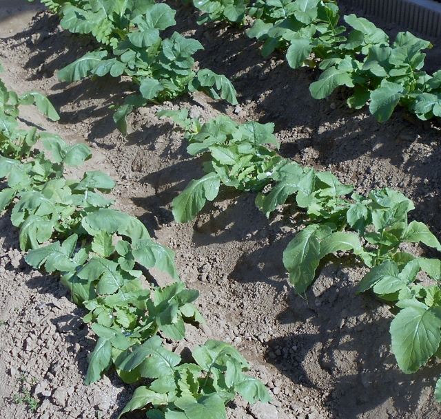 1本立ちにした大根苗です。しっかり土寄せをして吹く風に倒されず、地にしっかり根が張る様にしました。