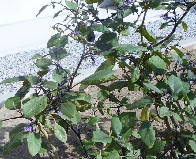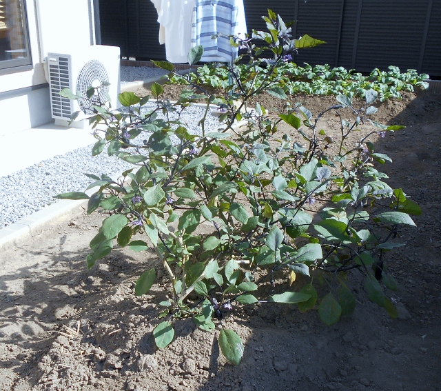 残したナスの木が元気です。9月に入って収穫すると秋ナスと言って美味しいんだそうです。皮が厚くなり、大きくすると底が割れてきます。小さめに収穫し、皮を剝いていろいろにして食します。柔らかくて美味しいです。