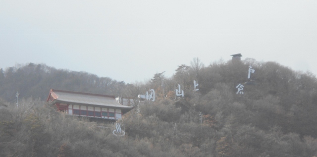 戸倉上山田温泉のシンボル城山です。春霞? 良い天気なのに景色全体が霞んで見えます。