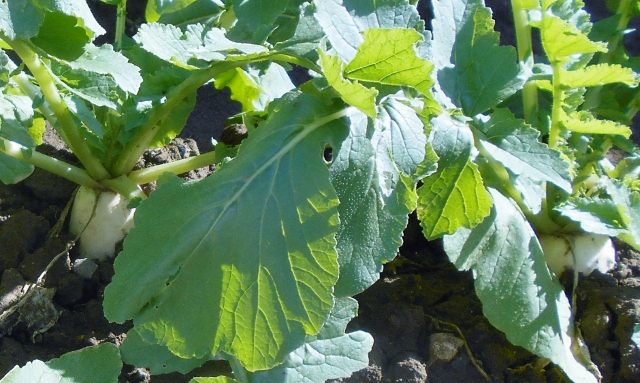 辛味大根が地上に迫り出しました。11月に入ってからの収穫かと思っていたのですが、意外と早く収穫出来そうです。温暖化の影響があるのかな。