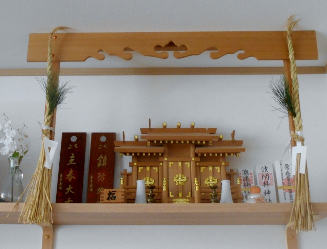 神棚の左右にしめ飾りで正月気分が盛り上がります。