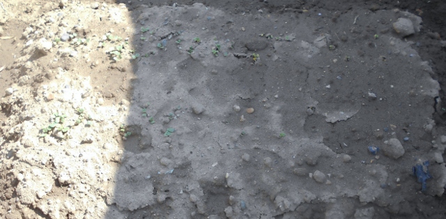 辛味大根と同時に撒いた二十日大根です。何とか7割方芽を出しています。これからどんな成長を見せるか見守ります。