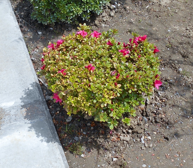 街路樹の下、サツキの植込み等に雑草が蔓延っています。早めの除草対策が肝心です。