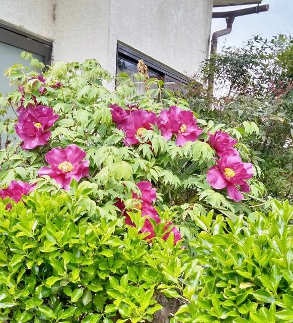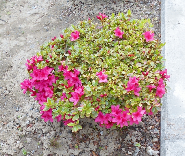 庭のツツジの三種類の一つ、ピンクです。一部が開花しました。